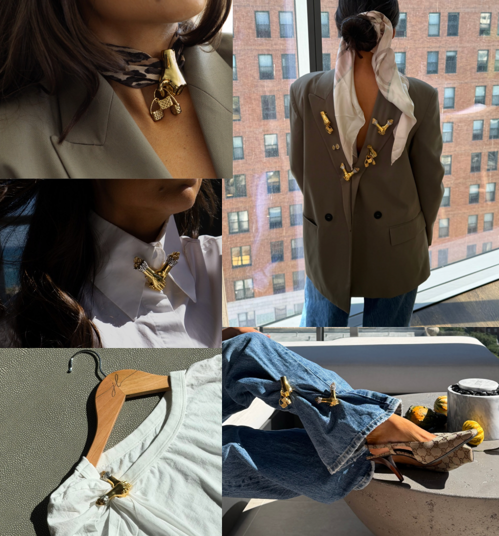A blazer lapel and a brooch are a match made in style heaven. It’s timeless, confident, and instantly makes your outfit feel intentional.